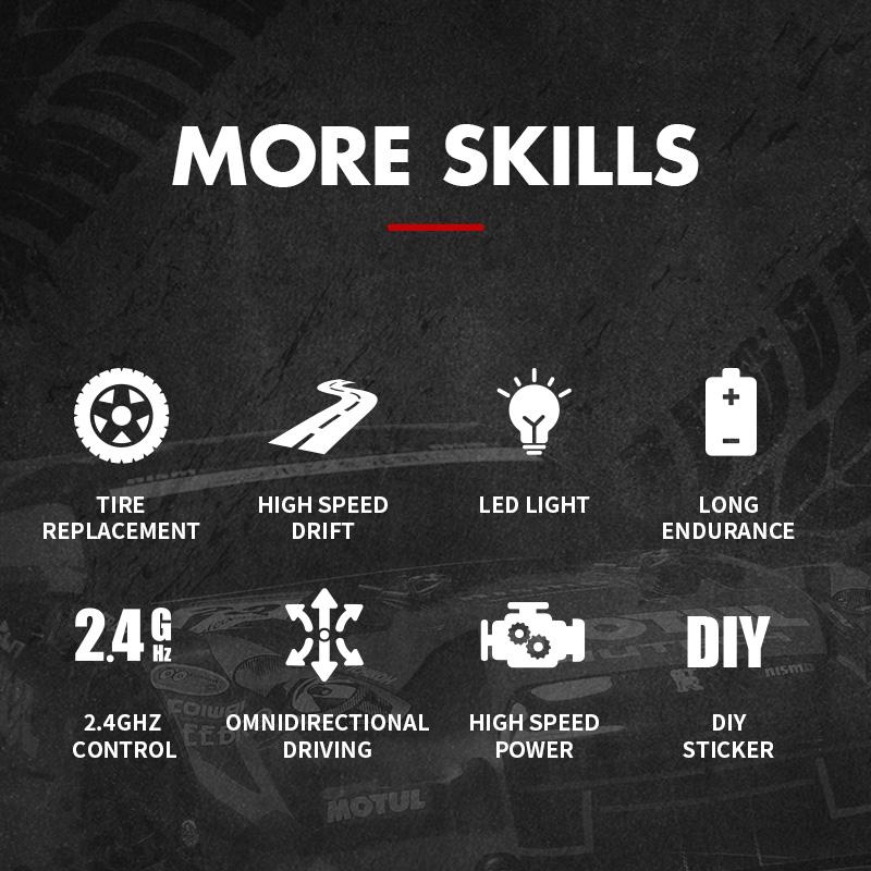 • Supports Forward Backward Left Turn Right Turn And Drifting Action