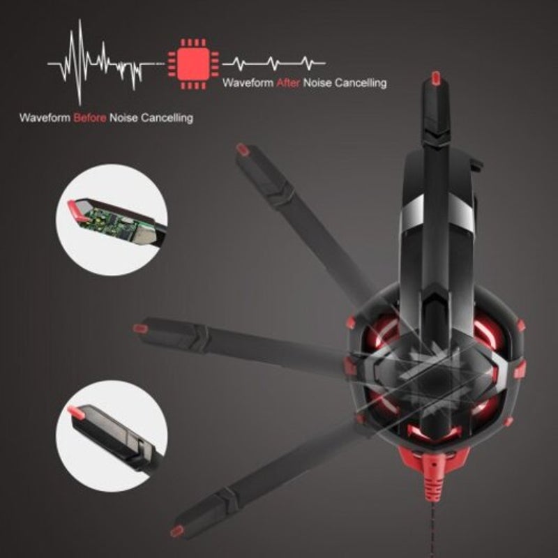 K2aGaming Headset Wired Stereo GameHeadphonesWIthCrystal Clear SoundLed Lights Noise-Canceling MicrophoneFor Ps4