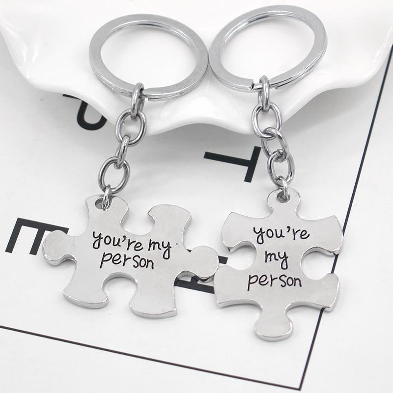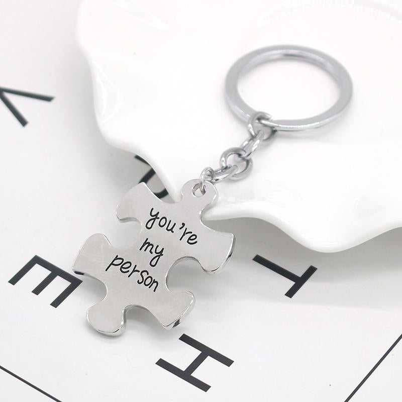 Keyrings 2 Pcs / Set Puzzle Piece You're My Person Couple Key Chains Gift Idea