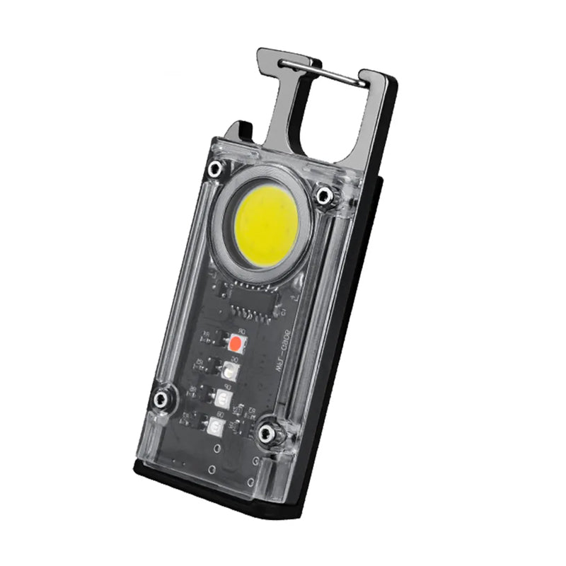 This Keychain Light Comes With Multiple Modes So It Can Be Used In Multiple Scenes.A Double Press The Switch To Enter The Main Lighting Mode: Weak Light - Medium Light - Strong Light Green Light - Purple Light - Red Light - Red Light Flashing - Red Blue Light.