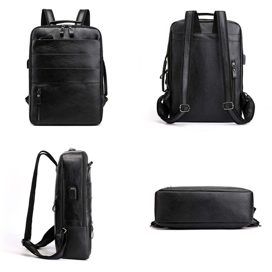 Business For Men Waterproof Pu Leather Laptop Bag Large Capacity Usb Charging Rucksack Male Fashion Bagpack Backpacks