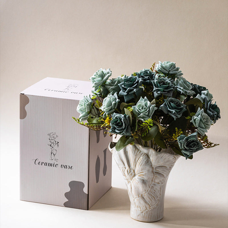 This Elegant White Ceramic Flower Vase Adds A Sophisticated Touch To Any Room. With Intricate Floral Detailing This Vase Serves As A Timeless Home Accent Perfect For Displaying Artificial Flowers Or As A Standalone Centerpiece.