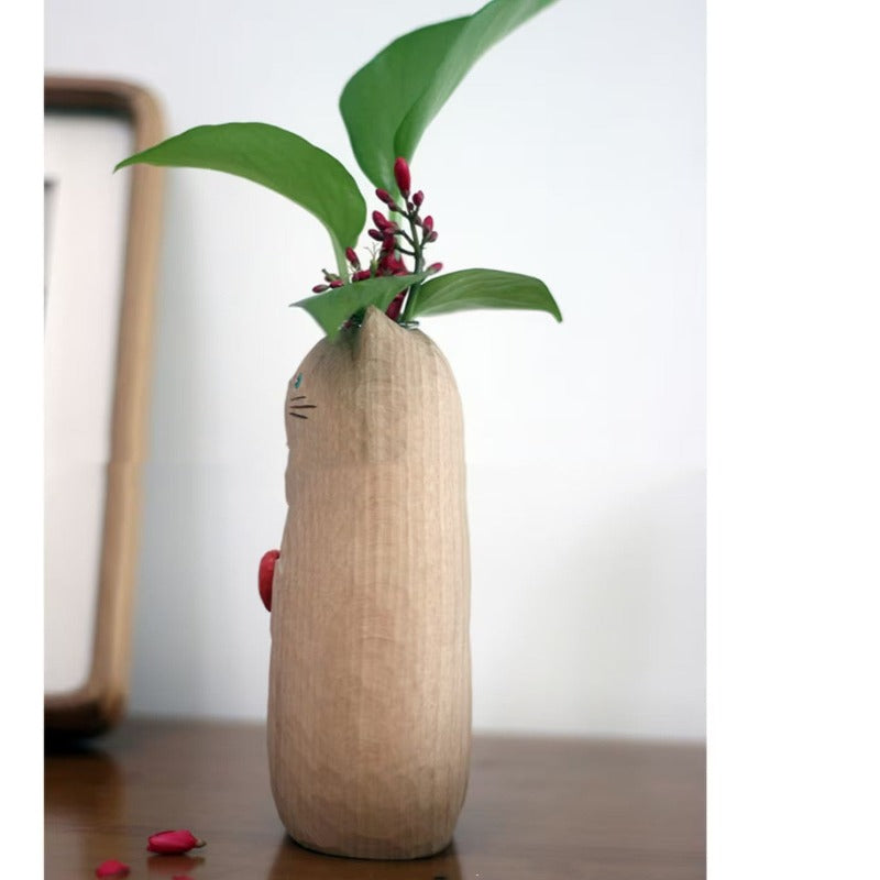 Creative Heart Cat Vase Handmade Christmas Wooden Love Log Crafts Vases