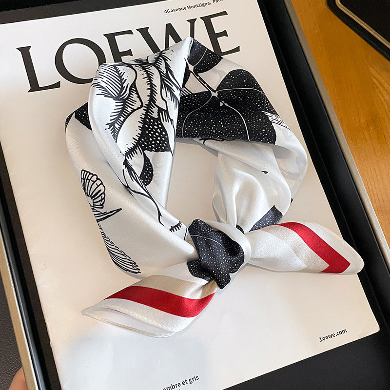 Red Edge Pure Silk Scarf Elegant Flower Design Square Handkerchief (Style 13) Scarves & Wraps