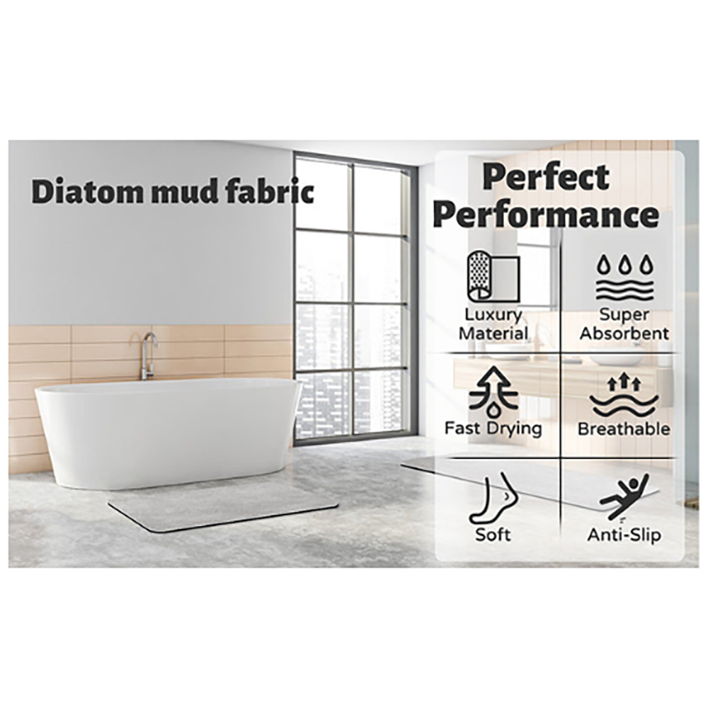 Say Goodbye To Soggy Bathroom Floors With Our Innovative Diatomite Bathroom Mat. Designed For Exceptional Absorbency And Rapid Drying This Mat Keeps Your Feet Comfortable And Your Floors Dry Safe And Clean.