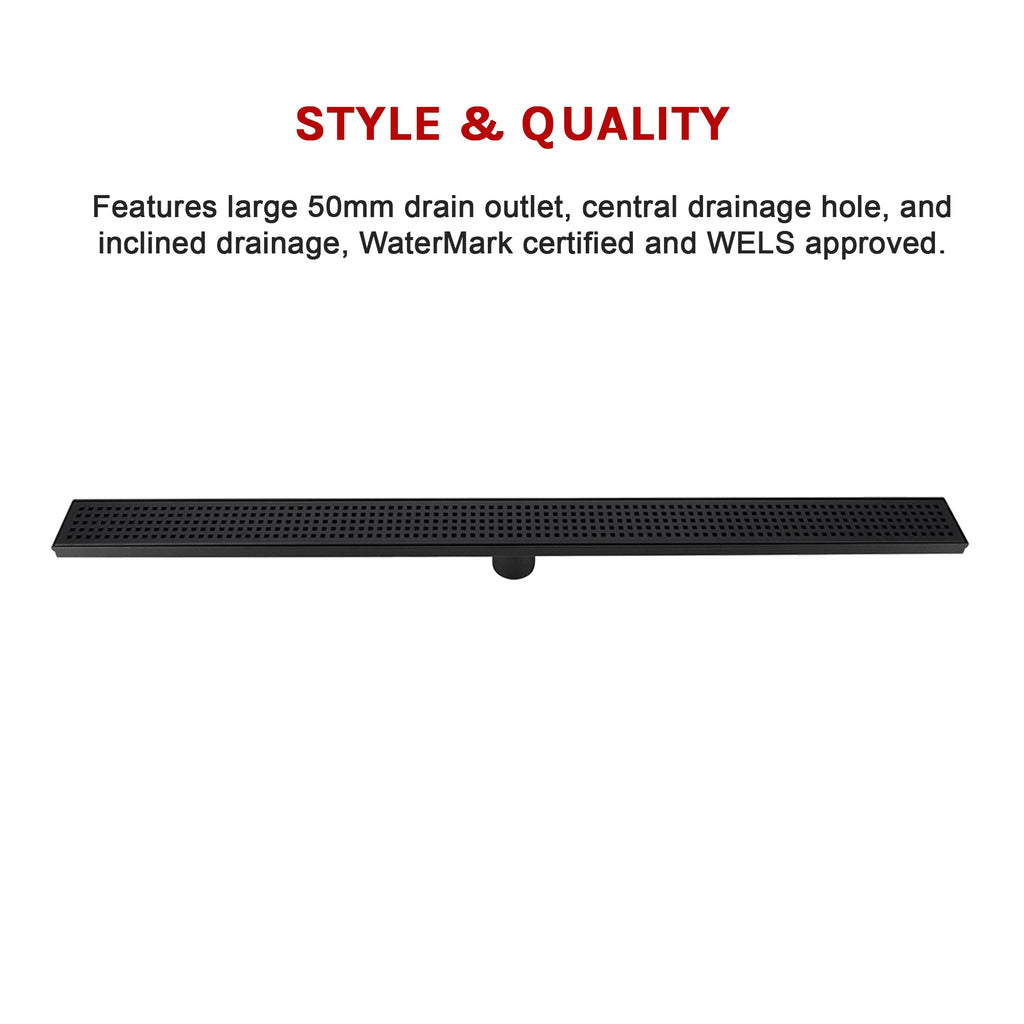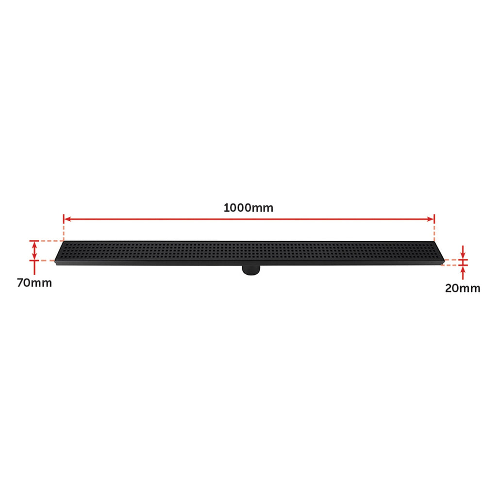 1000Mm Bathroom Shower Black Grate Drain W/Centre Outlet Floor Waste Square Pattern Drain Grates
