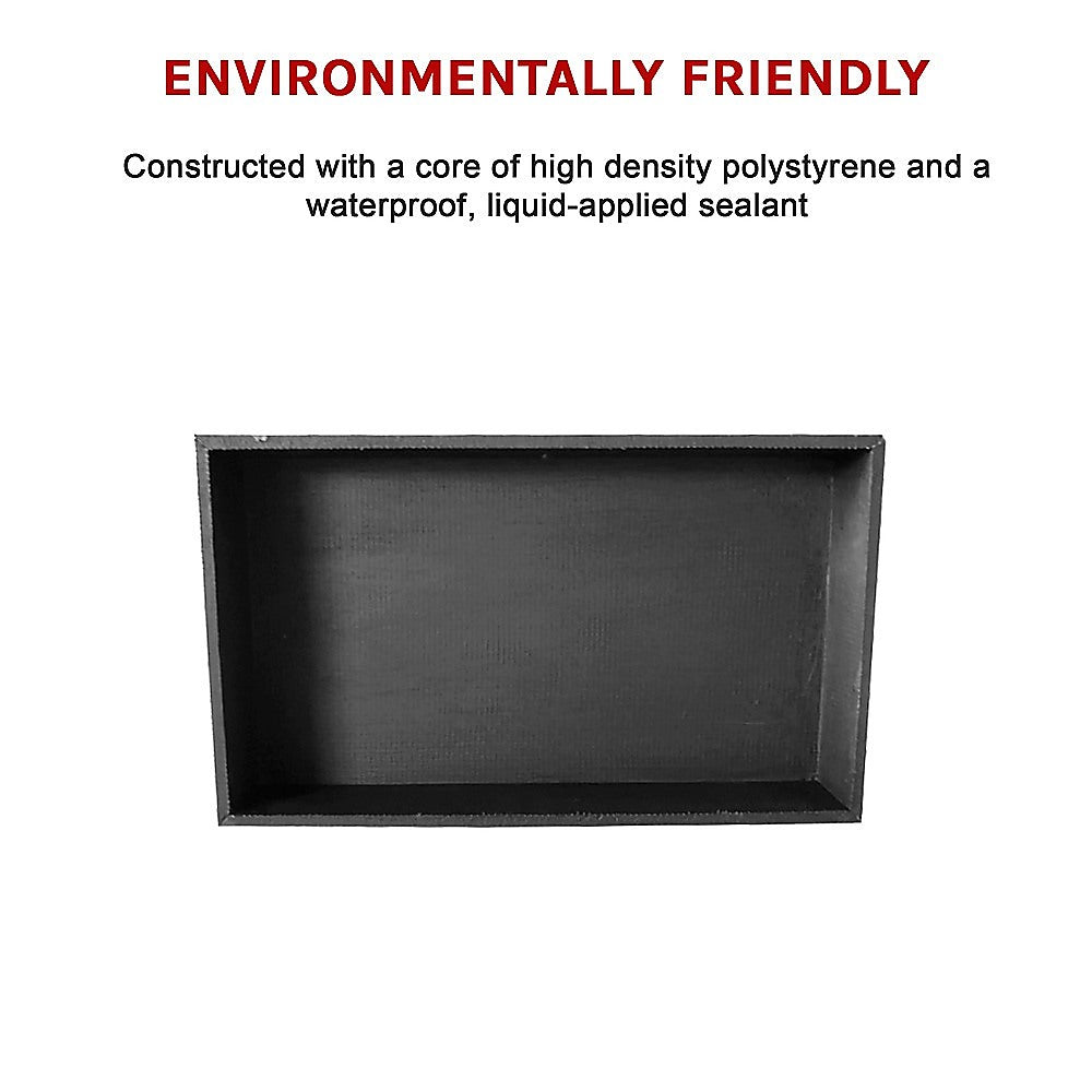 Constructed with a core of high-density polystyrene and a waterproof liquid-applied sealant this niche gives you a waterproof ready-made substrate. Easy to install and ready to tile within minutes of installation these niches provide you with a versatile bathroom solution that we guarantee will never degrade leak or rot.
