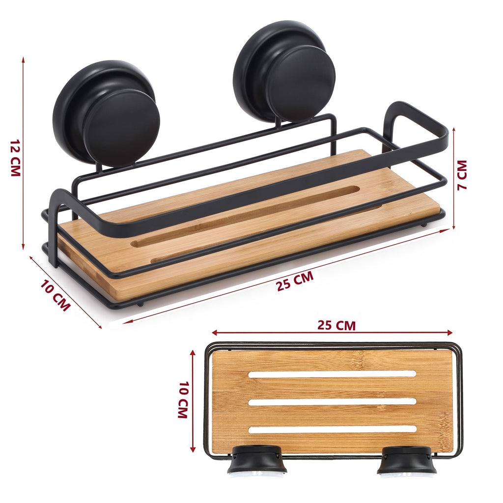 Carla Home 2 Pack Rectangular Bamboo Corner Shower Caddy Shelf Basket Rack With Premium Vacuum Suction Cup No Drilling For Bathroom And Kitchen Shelve