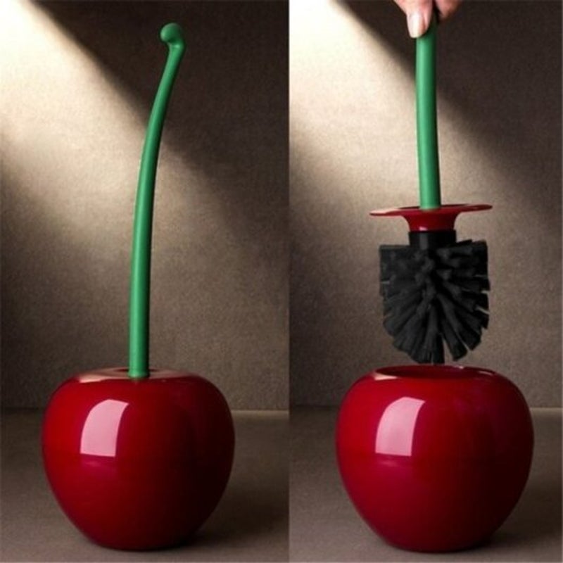 - Cherry curve handle design easy to brush the toilet dirt. Cleaning grooves slit and every corner is easy to clean