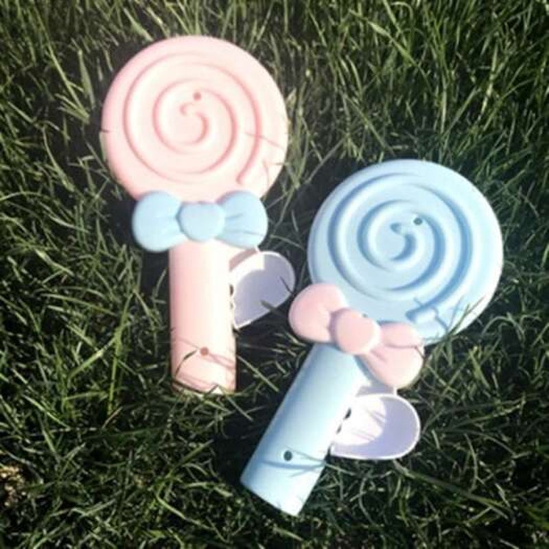 Mini Hand Held Lollipop Fan Light Blue Portable Fans