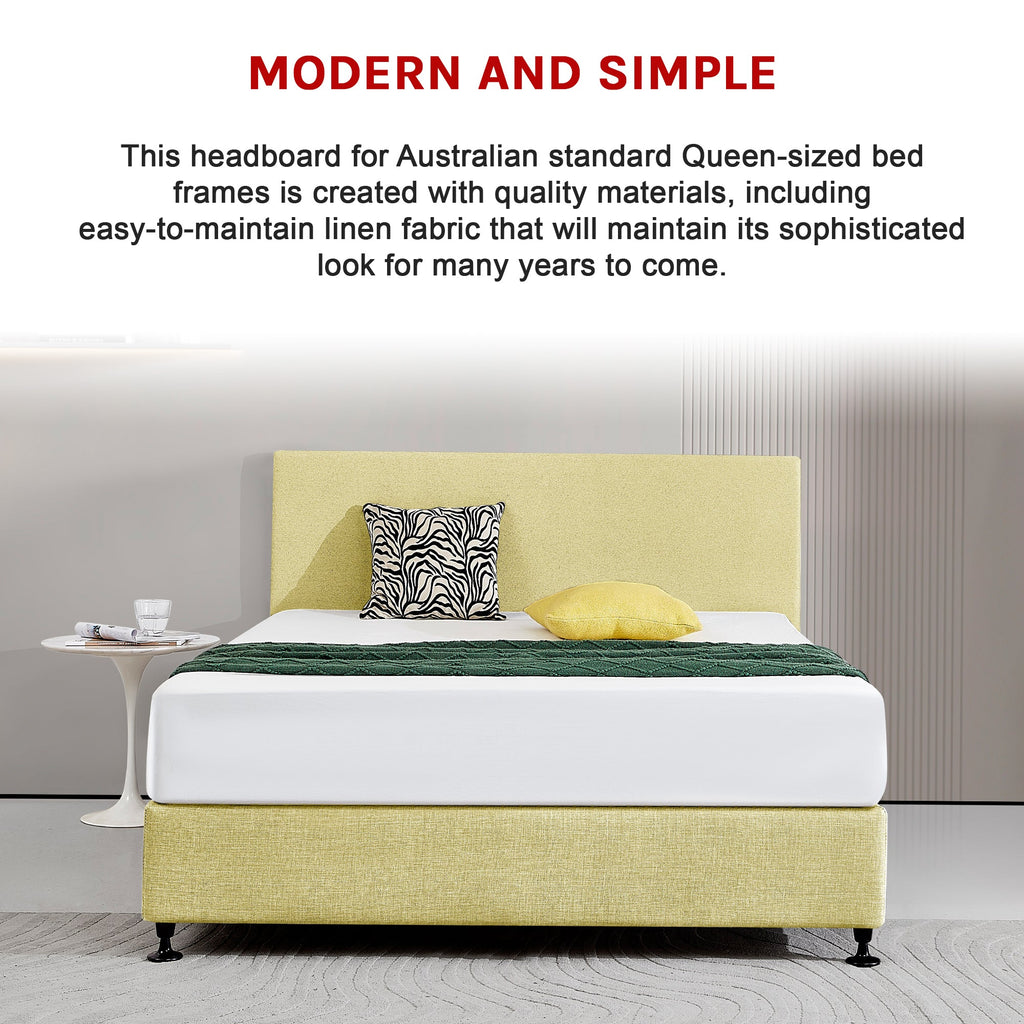 Br> This Headboard For Australian Standard Queen-Sized Bed Frames Is Created With Quality Materials Including Easy-To-Maintain Linen Fabric That Will Maintain Its Sophisticated Look For Many Years To Come. This Particular Model Comes With Simple Linen Fabric That Will Blend Seamlessly With A Wide Variety Of Bed Frames And Other Bedroom Furniture.