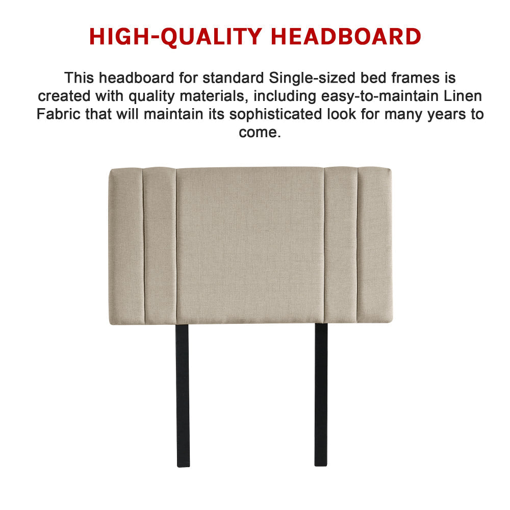 Linen Fabric Single Bed Deluxe Headboard Bedhead - Beige