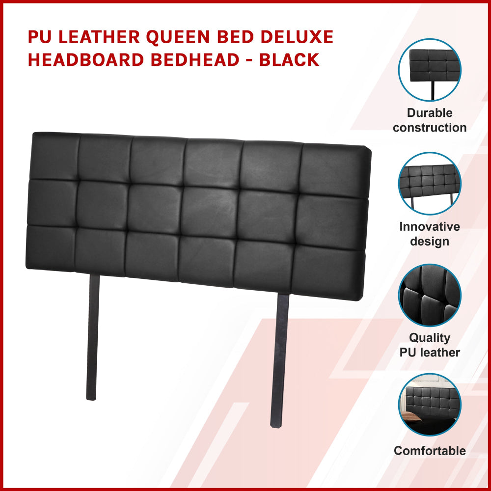 Pu Leather Queen Bed Deluxe Headboard Bedhead Black Headboards & Footboards