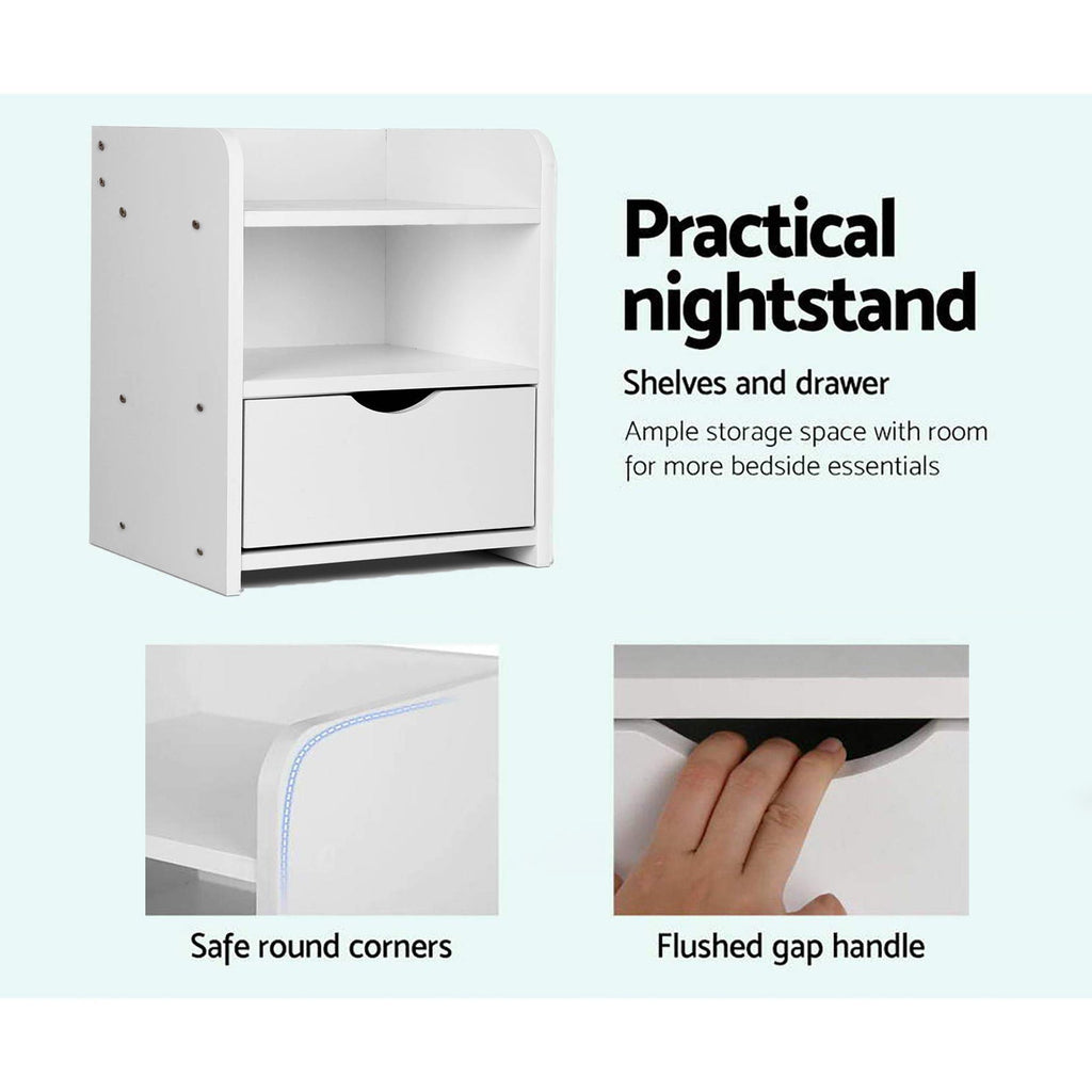 Bedside Table Side Nightstand Storage Drawer Shelf Bedroom Unit Bedside Tables