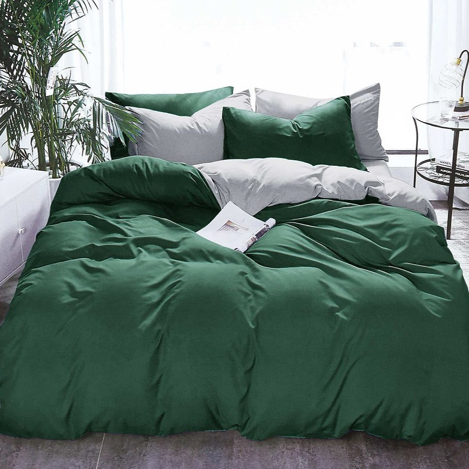 Fabric Fantastic 1000Tc Reversible Super King Size Green And Grey Duvet Quilt Cover Set Quilt Covers