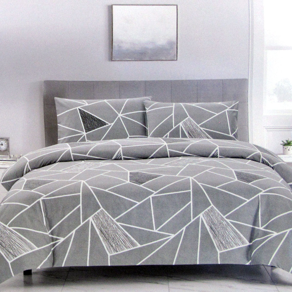 Artex Bentley Grey Quilt Cover Set Geometric Pattern Reversible Printed Microfiber Polyester Quilt Covers