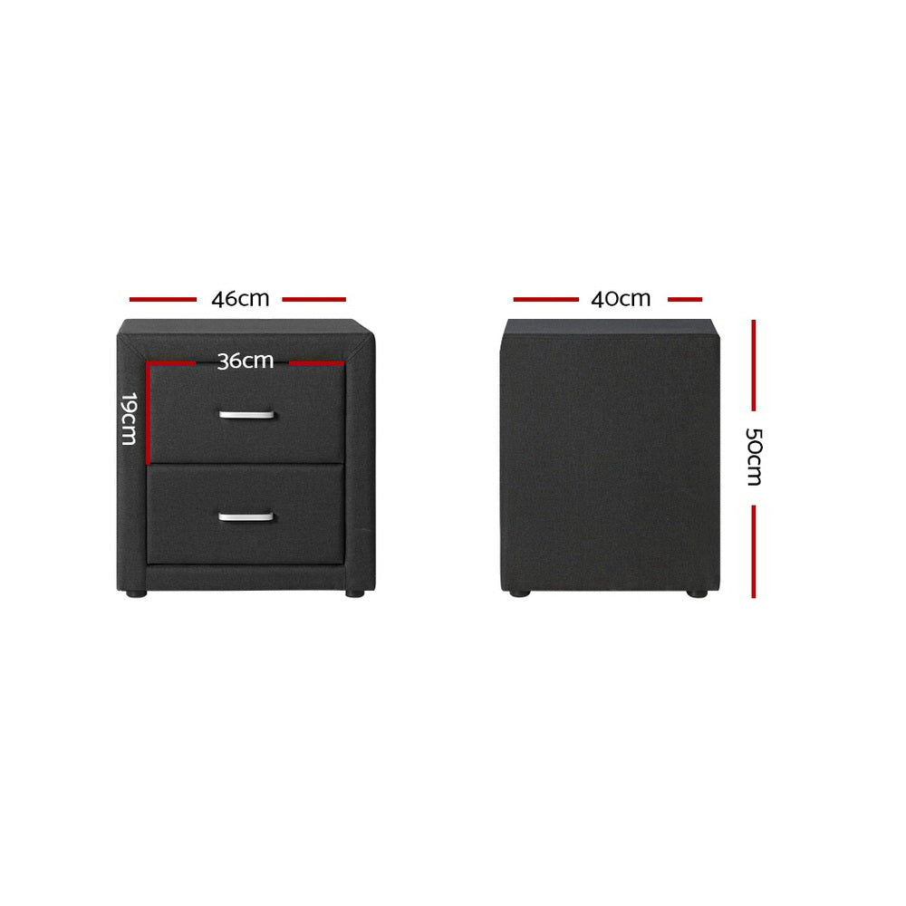Fabric Bedside Table With Two Drawers For Bedroom Furniture Charcoal Bedside Tables