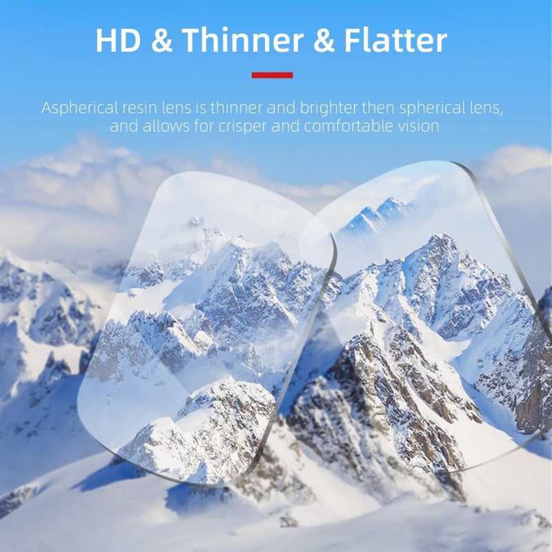 • The aspherical resin lens is thinner and more translucent than spherical lenses offering a more comfortable visual experience