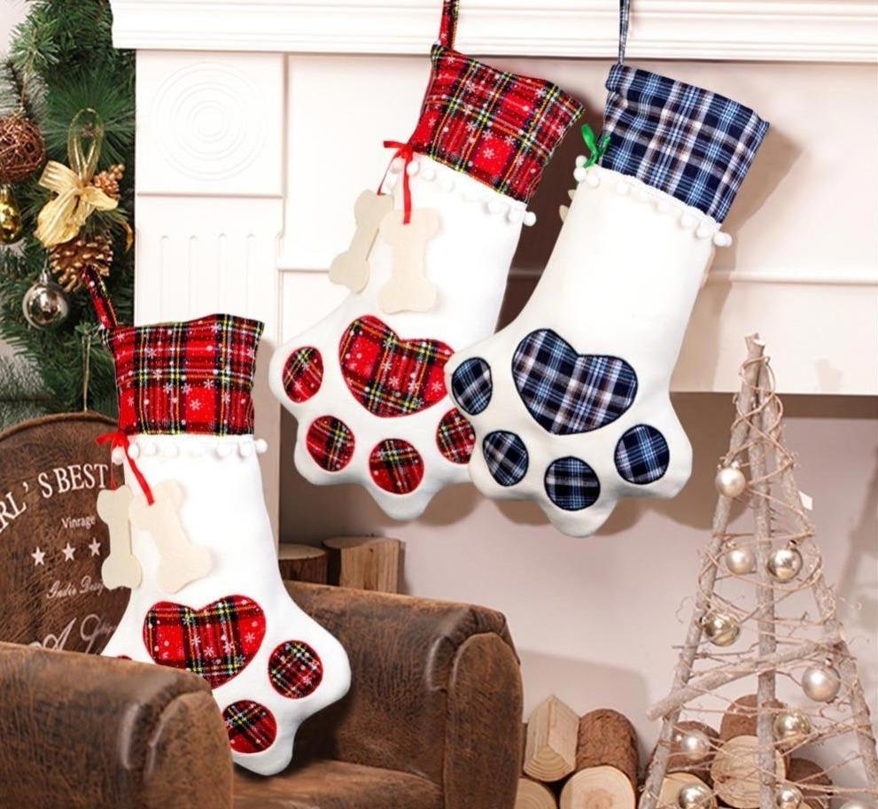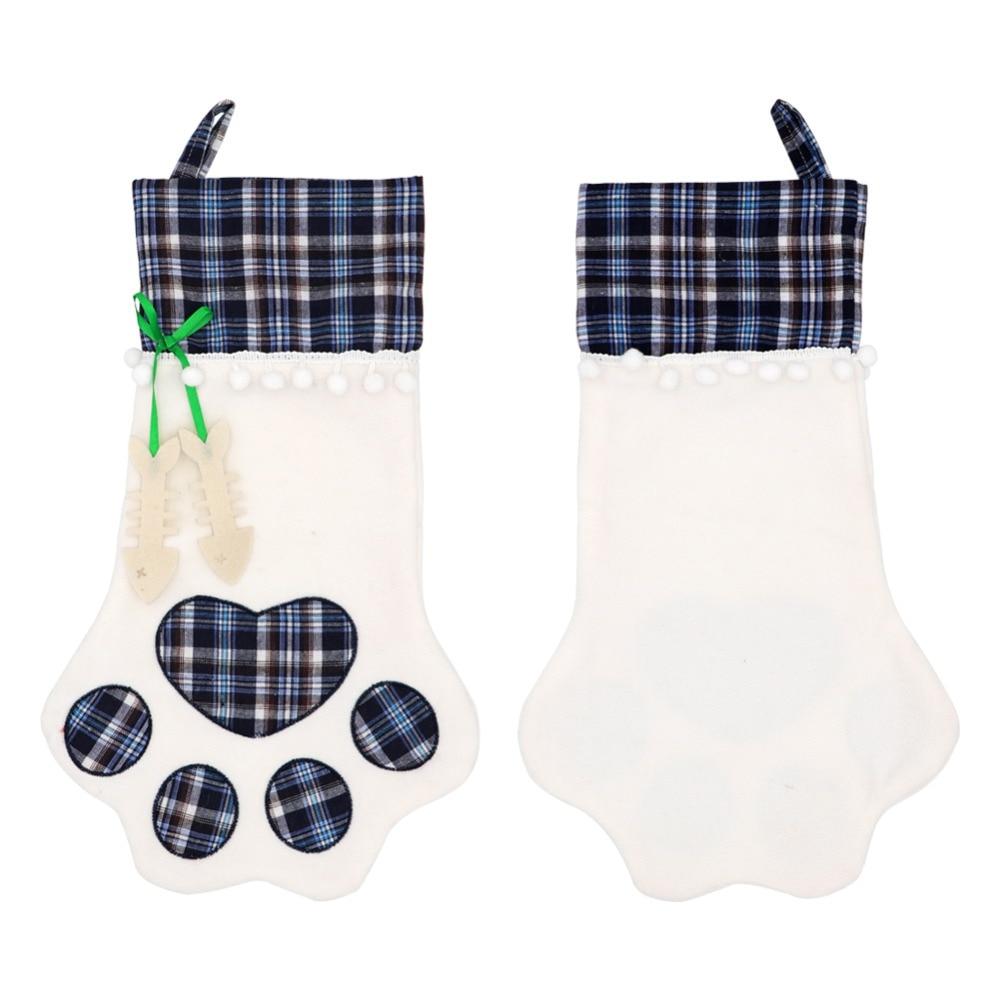 Red Or Blue Plaid Paw Shaped Pet Christmas Stocking For Dogs Cats Seasonal Decorations