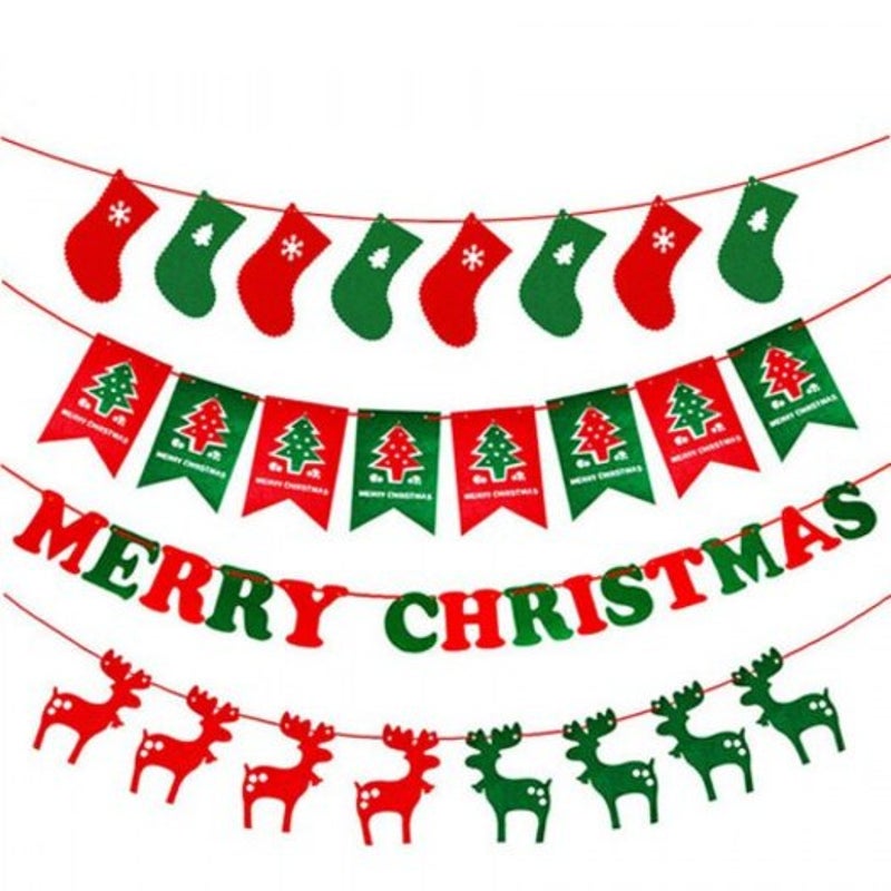 Christmas Hanging Decorations Pull Flags Merry Xmas Deer Tree Letter Socks Decoracion G Seasonal Decorations