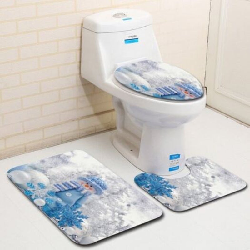 Dl2001 Christmas Snowman Bathroom Toilet Three Piece Floor Mat Door Carpet Multi Bath Mats Rugs & Toilet Covers