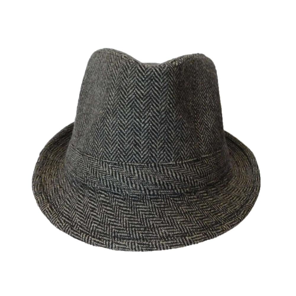 Br Classic Trilby Hat Fedora Felt Cap Costume Gangster In Herringbone Charcoal Hats