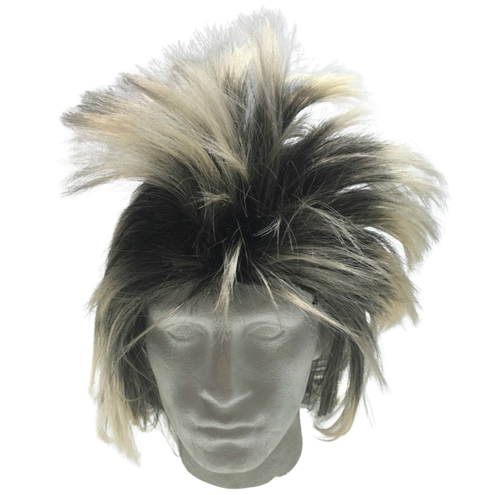 Br Costumes Mens Long Spiky Wig Rock Punk 80S Fancy Dress Bogan Mullet Spikey Black/Blonde Wigs Facial Hair