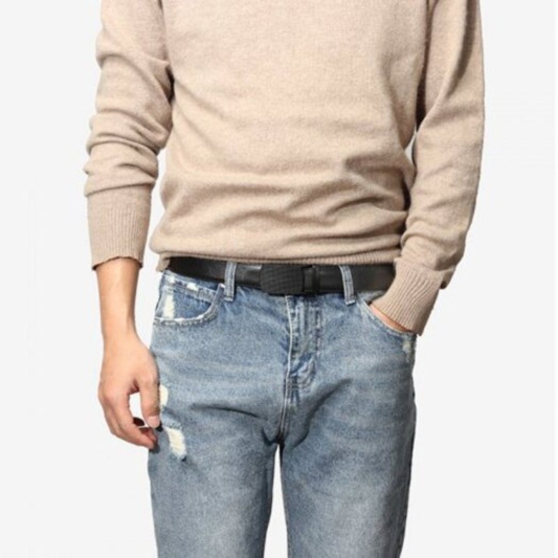Men's Fashion Urban Business Automatic Buckle Belt Black 120Cm Belts