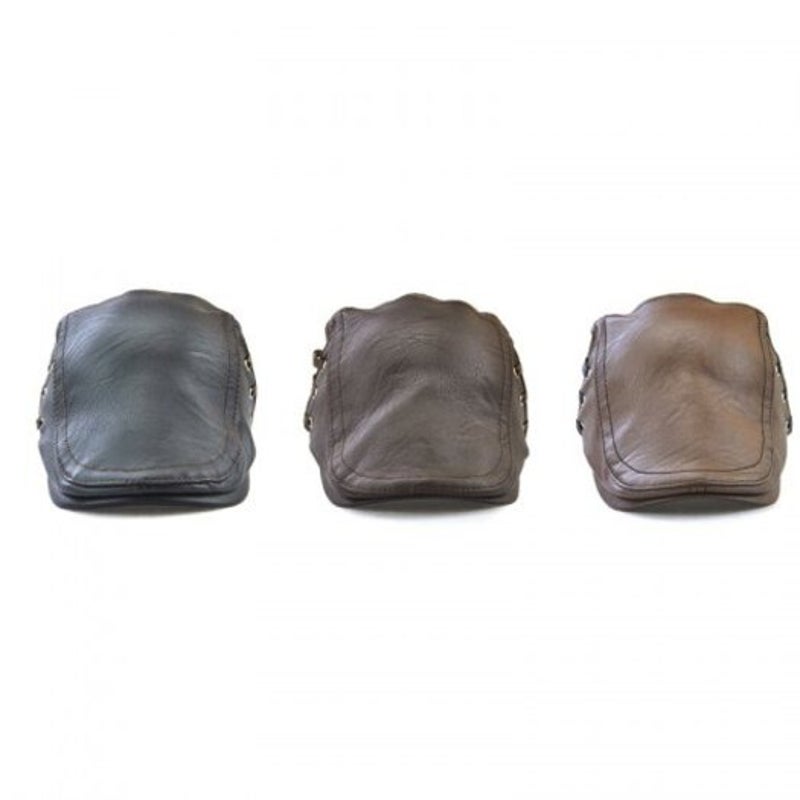 Leather Cap Personalized Piercing Strap Beret For 56 59Cm Deep Coffee Hats