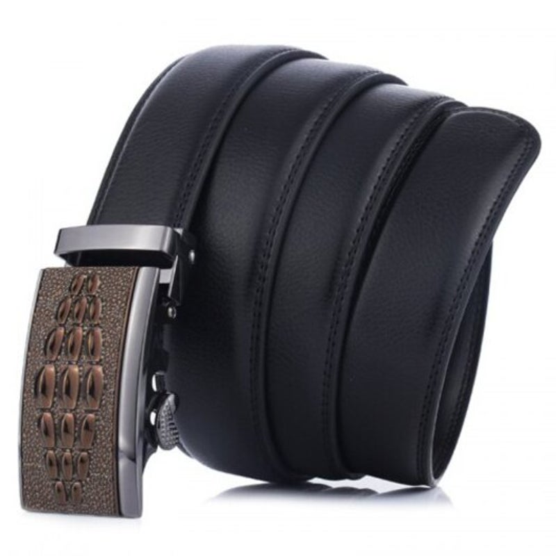 Men's Fashion Automatic Buckle Genuine Leather Belt Business Simple Waistband Black Belts