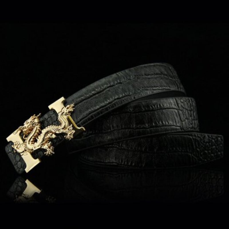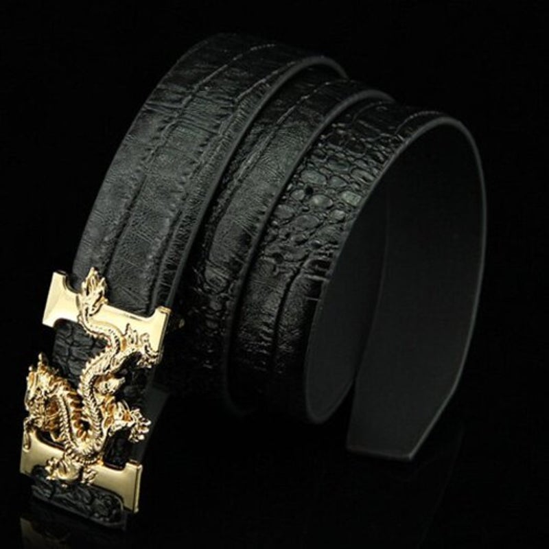 Chinese Style Dragon Head Men's Belt Smooth Buckle Crocodile Pattern Waistband Coffee Belts
