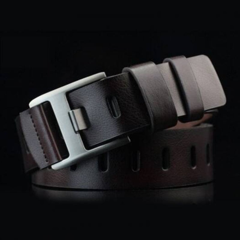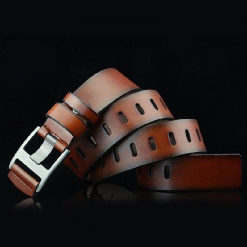 Men's Casual Belt Pin Buckle Young Retro Big Hole Waistband Deep Coffee Belts