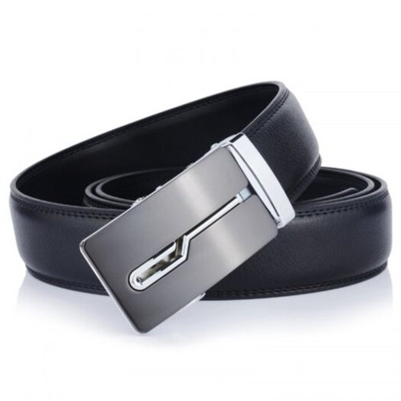 Men's Genuine Leather Belt With Automatic Buckle Business Durable Waistband Black Belts