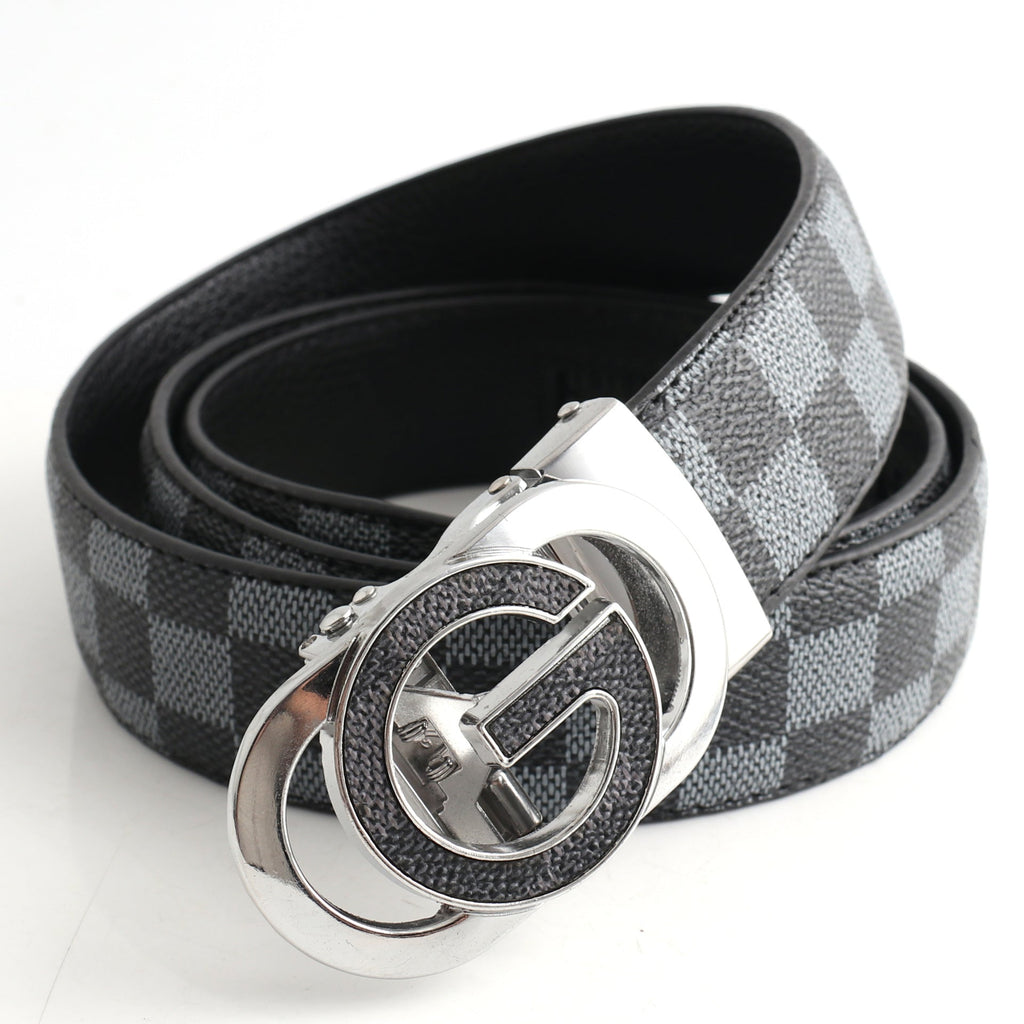 Luxury Designer Style Pu Leather Belt - 120Cm Automatic Buckle Checkered Pattern