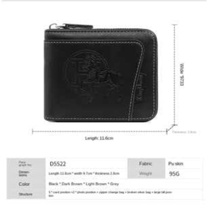 Elevate Your Style And Stay Organised With This Premium Men's Leather Wallet. Featuring A Compact Design An Elegant Horse Embossed Pattern And A Practical Zipper Closure This Wallet Combines Functionality With Sophistication Making It A Perfect Daily Accessory.