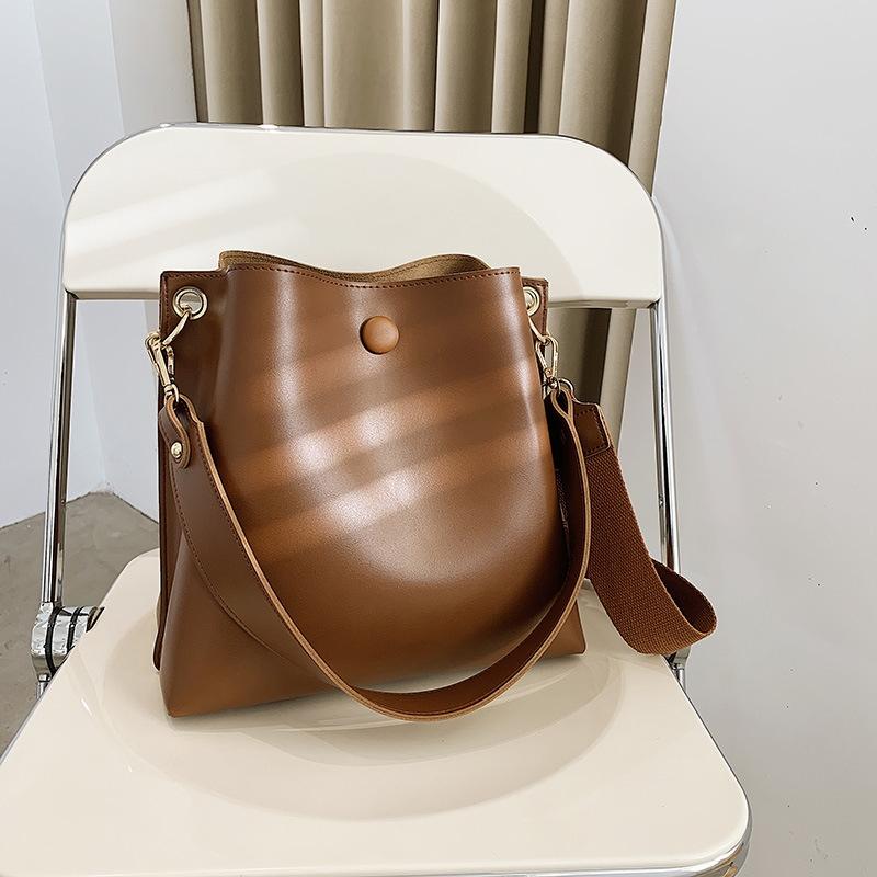 Retro Wide Strap Crossbody Bucket Bag For Women Brown Women's Bags & Handbags