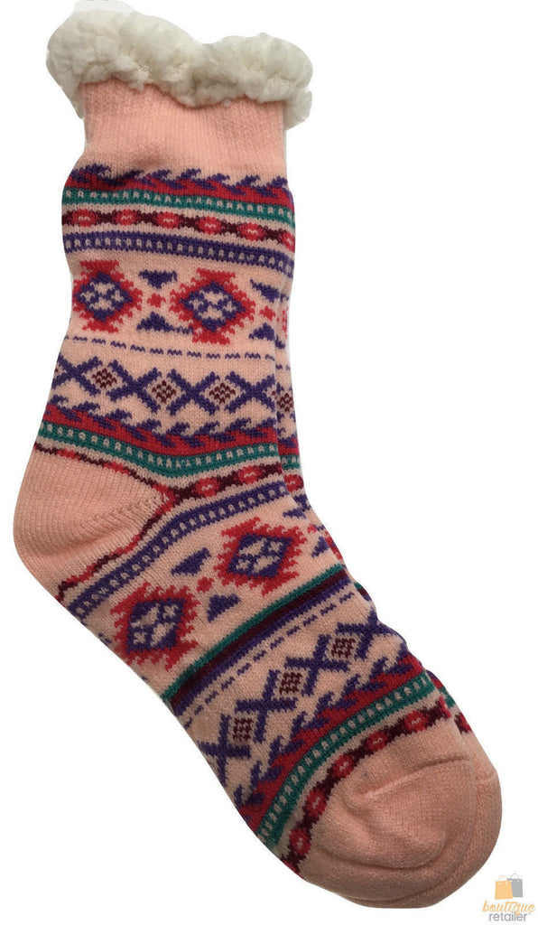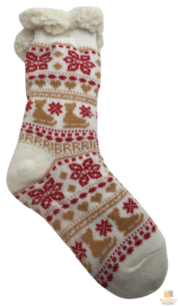1 Pair Ladies Thick Fur Bed Socks – Soft Fluffy Slipper Style With Non-Slip Sole (One Size)