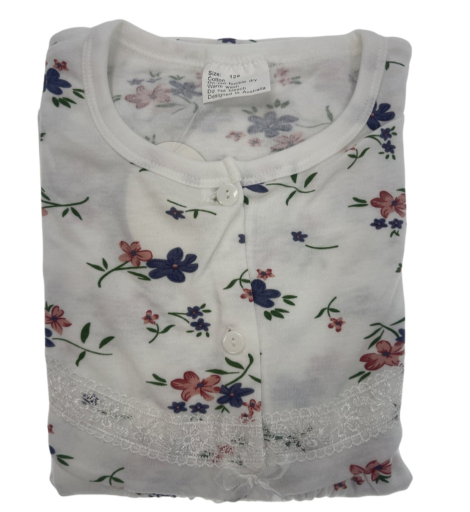Womens Ladies Cotton Nightie Gown Slip Petticoat Pjs Dress White/Pink 12 Sleepwear