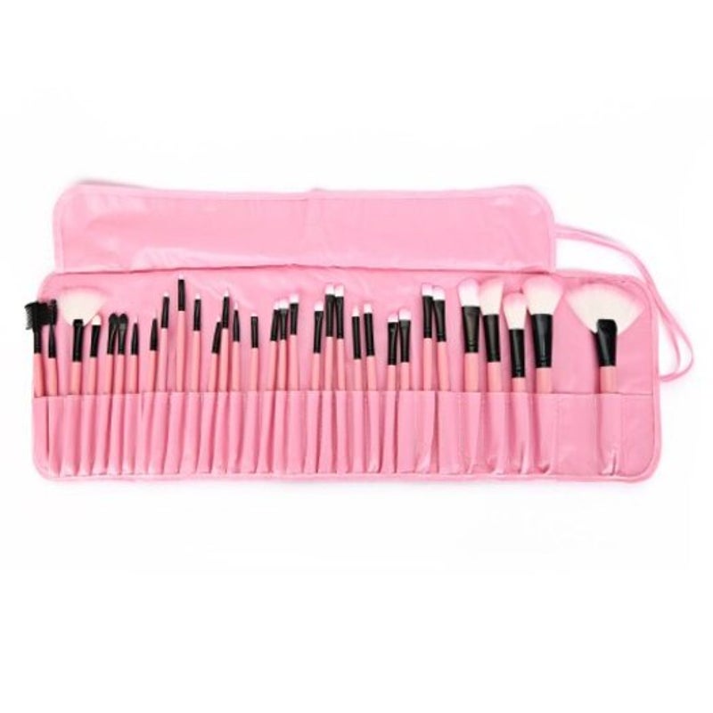 32 Pcs Makeup Brush Set With Faux Leather Pure Color Bag Pink Brushes