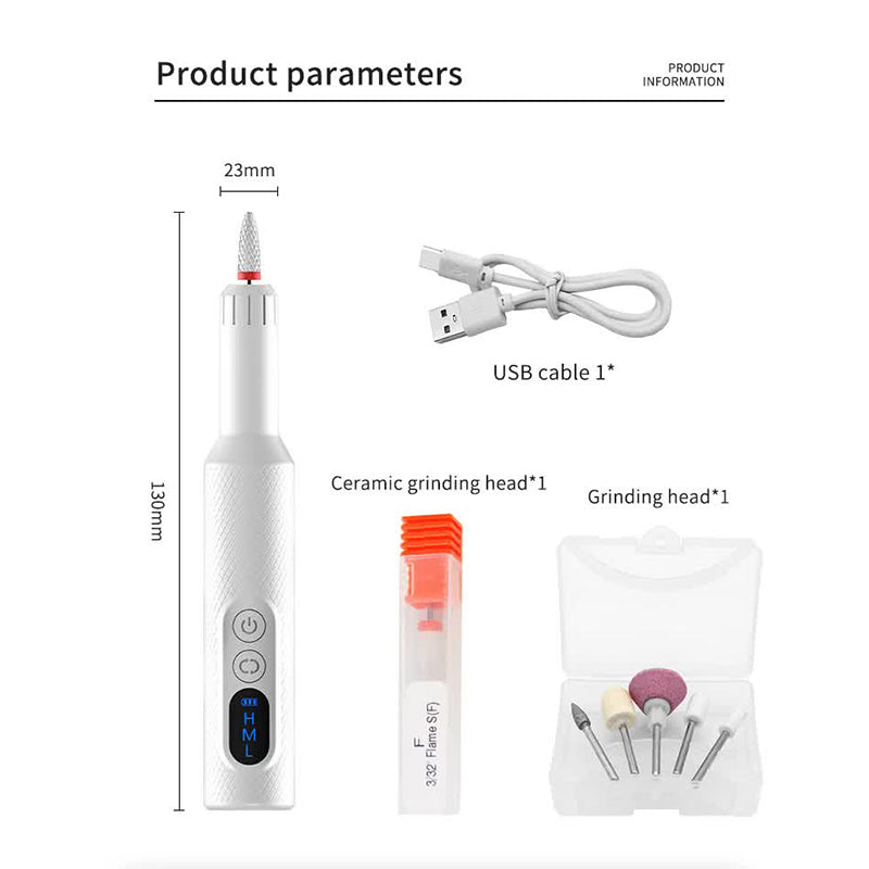 Perfect nails at your fingertips! The M3 electric nail drill machine is designed for professionals and personal use. Featuring 3-speed adjustments forward/reverse rotation and USB-C fast charging this lightweight and ergonomic tool is ideal for nail salons and at-home nail care.