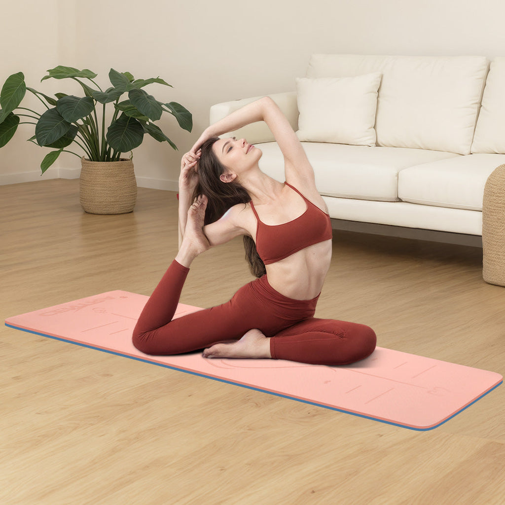 Centra Yoga Mat Dual Colour Body Position Lines Pink Mats & Non Slip Towels