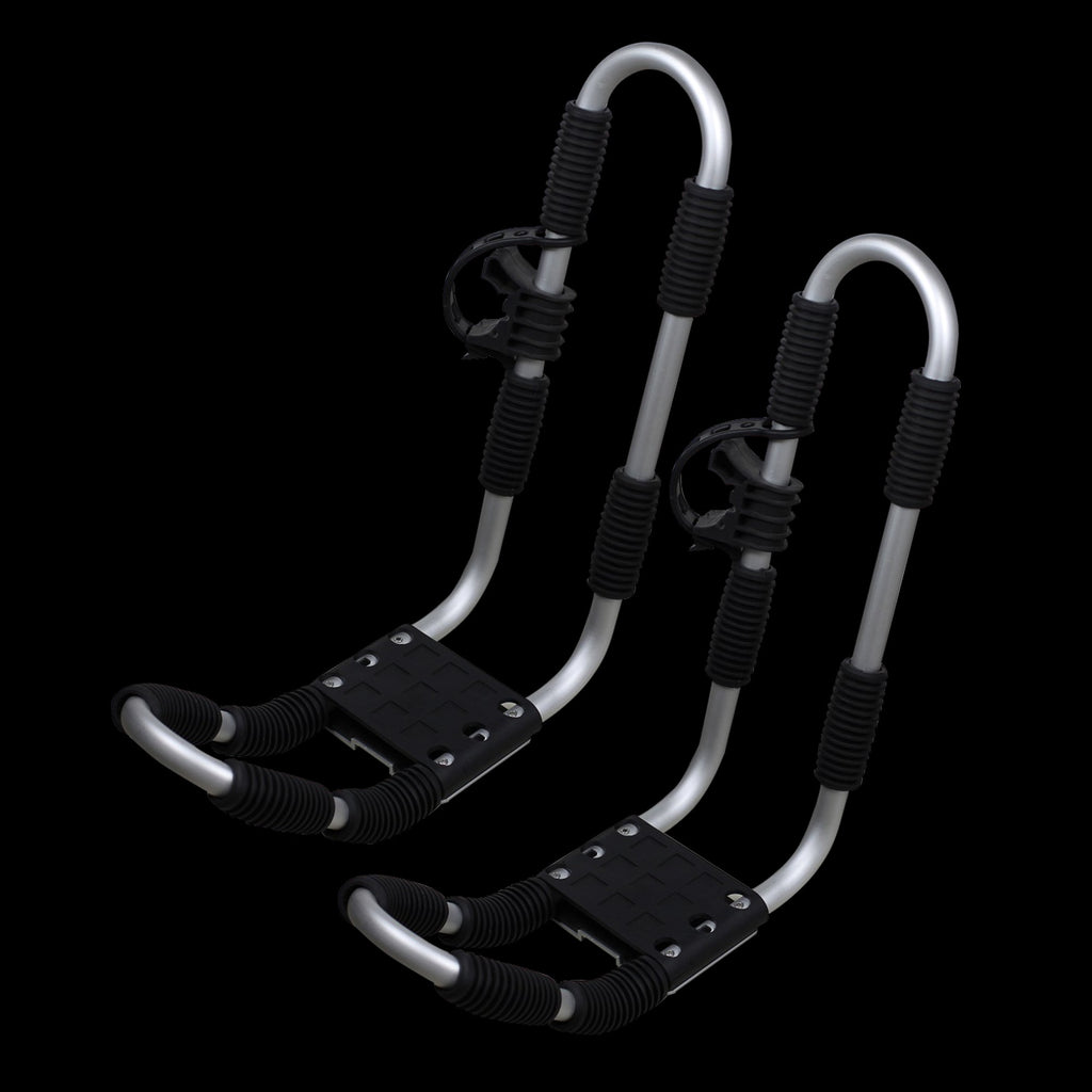 Transport Your Kayak Or Canoe With Ease Using This Sleek Silver Aluminum Roof Mount Rack. Designed With A Sturdy J-Bar Construction It Provides A Reliable And Convenient Solution For Carrying Your Watercraft Securely On The Roof Of Your Vehicle. Whether You’Re Heading To The Lake River Or Ocean This Rack Ensures Your Kayak Or Canoe Gets There Safely.