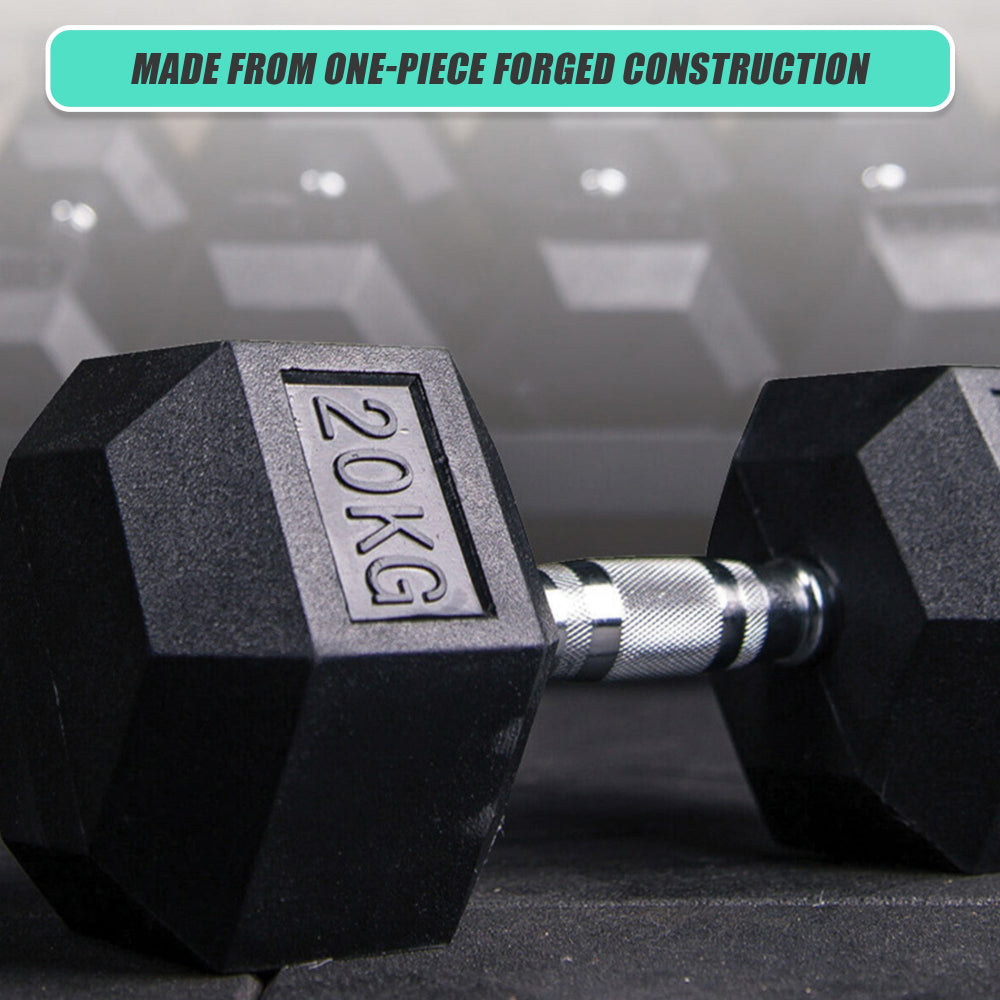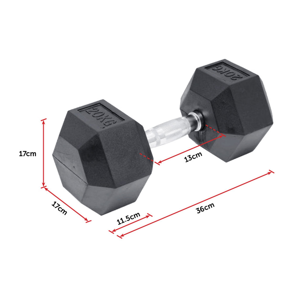 20Kg Commercial Rubber Hex Dumbbell Gym Weight Dumbbells