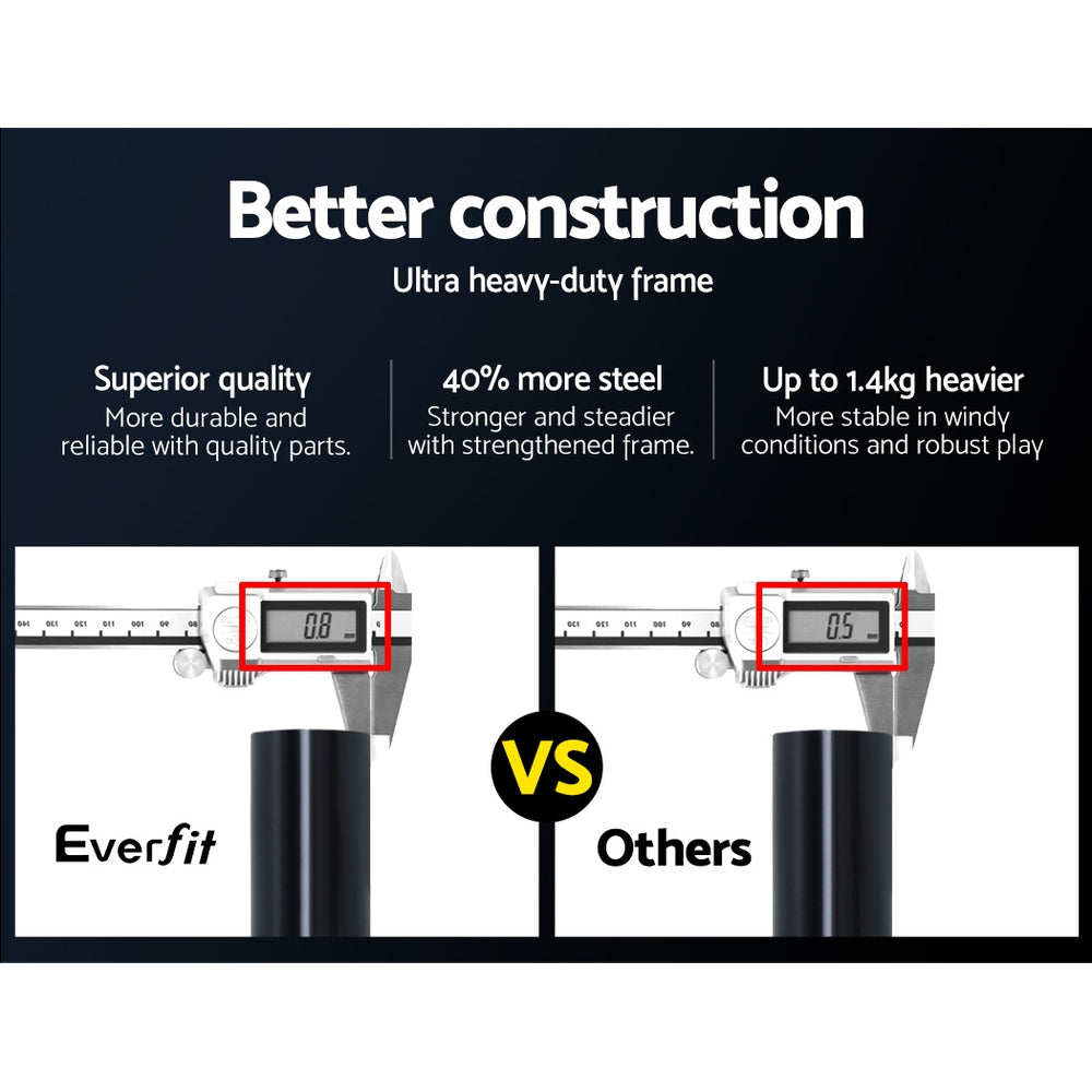 If you love the beautiful game you will surely love the Everfit Soccer Rebounder Net. Easy to set up the goal comes with a sturdy powder-coated steel frame and a high-density PE net to practice your soccer skills. Passing receiving heading trapping volleys and shootings are all intermixed with reactive skills on dealing with unpredictable ball rebounds. From goalkeeper to full back to forward every soccer position can be rigorously trained and tested in real game-like conditions. The frame itself is made with 40% more steel for extra durability. Plus the four ground stakes ensure that the entire ensemble stays firmly in place with robust play. Not least you can carry the goal easily to any location for a game with the bonus carry bag.