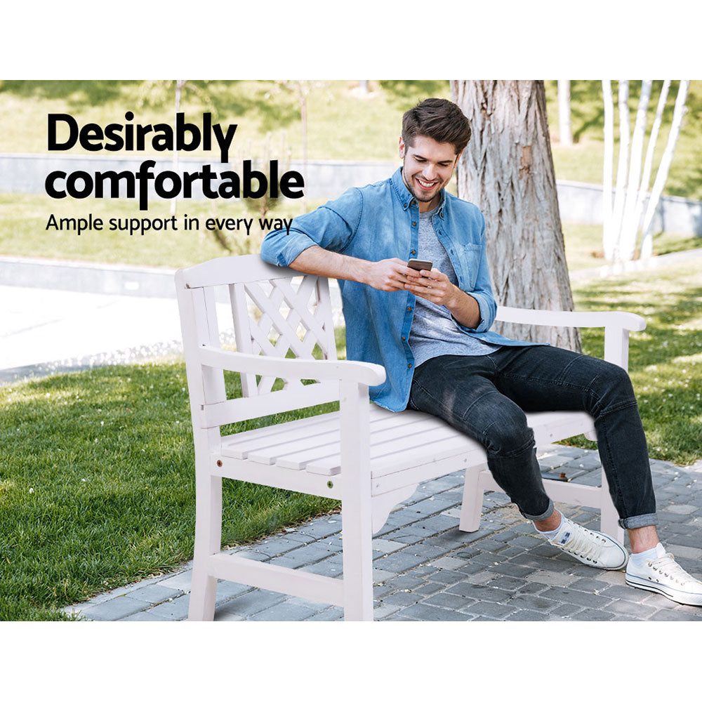 Gardeon Garden Bench 2 Seat Patio Furniture Timber Outdoor Lounge Chair White Patio Benches