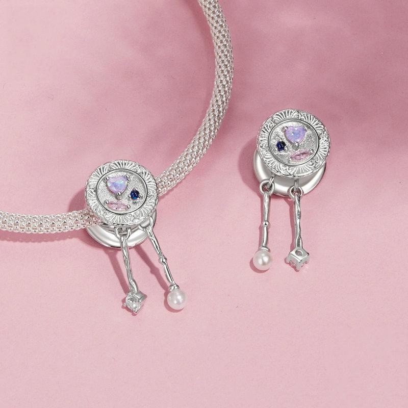 925 Sterling Silver Platinum Plated Tassel Beads Bracelet Charms & Pendants