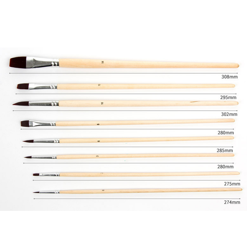 8Pcs Pebeo Watercolor Paint Brush Bristle Hair Painting Drawing Oil Artists Brushes