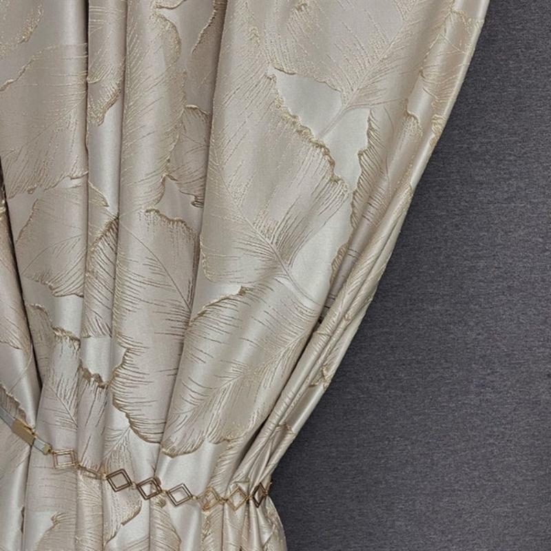 • 1 X Curtain Beige 500 Centimetre X 250 Centimetre 3D Leaves Luxury Blackout Curtain