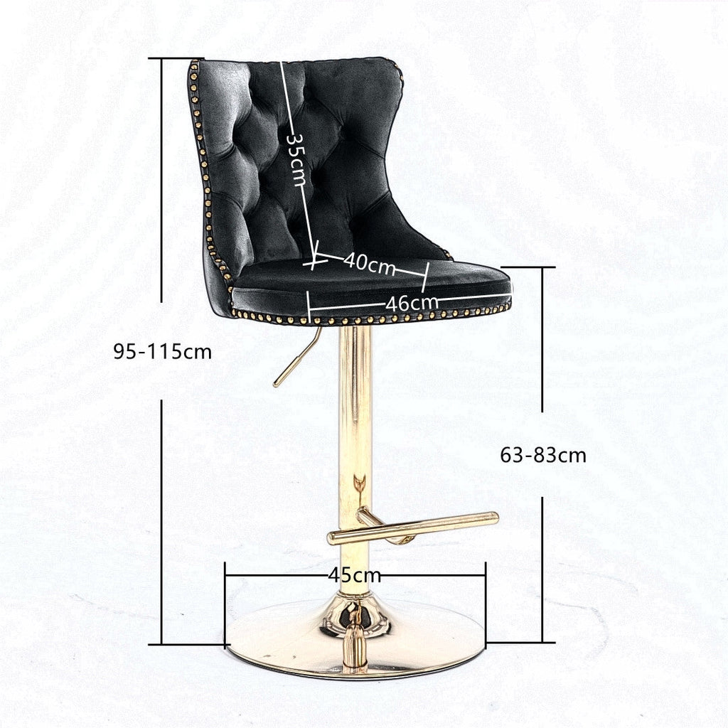 4X Height Swivel Bar Stool Velvet Studs Barstool With Footrest And Golden Base Black Benches Bar Stools