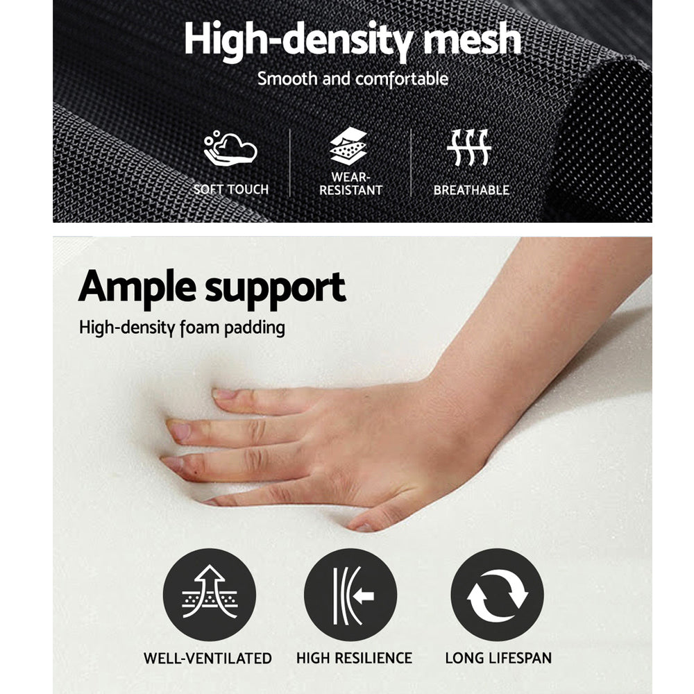 Our Artiss Matrix Office Chair takes work and relaxation seriously. Fact is the chair integrates both perfectly to give you a premium chair that does more than just luxurious seating. It is durably constructed with a Y-shaped back frame for sturdiness. The highly breathable mesh means that you are never hot and bothered with long sitting hours as the chair is always well-ventilated. The S-shaped lumber support keeps your back comfortable while the headrest can be adjusted to suit your head. Better still the chair can be reclined to 150A° to suit work leisure relaxation and every purpose in between. Together with its retractable footrest and flexible armrests that adjust with back recline the chair is simply a good seat to keep your feet up for a well-deserved break. Not least firm base features mute castors that not only prevent floor scratches but also allows quiet and smooth mobility together with the omni-directional seating.